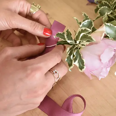 Um es an Ort und Stelle zu halten, nehmen Sie Ihr floristisches Band.