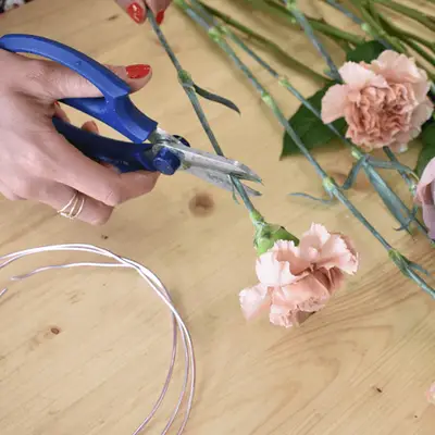 Messen Sie den Kopf und schneiden Sie den Floristikfaden auf die Größe.