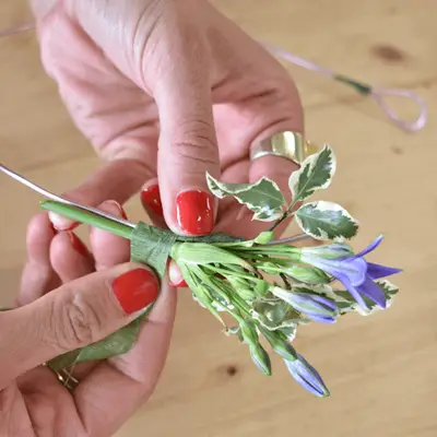 Halten Sie sie in Position, indem Sie sie streng mit dem floristischen Band einwickeln.